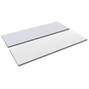 - Reversible table tops have a different color and pattern on each side with coordinating dark gray edge banding