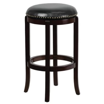 - 29 Backless Cappuccino Wood Barstool With Black Leather Swivel Seat