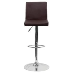 - Contemporary Brown Adjustable Barstool With Chrome Base Straight Mid Back Design
