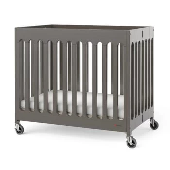 - Foundations Compact Boutique™ Folding Crib, Slatted Foam Mattress, Dapper Gray