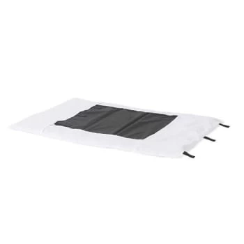 - Sheet features pass-through holes to allow straps to secure mattress to travel yard.