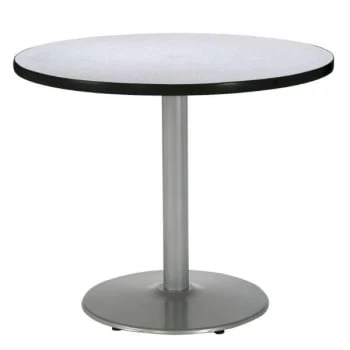 - KFI 42 Round Pedestal Table. Gray Nebula HPL Top, Round Silver Steel Base