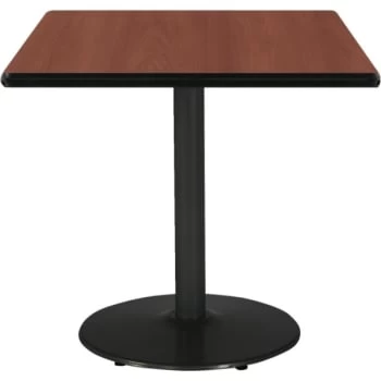 - 42″ Square Pedestal Table With Mahogany Top, Round Black Base