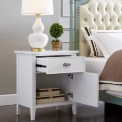 - Leick Home Assembled Nightstand Cabinet Table With Ac/Usb Outlet