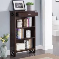 - Leick Home Mantel Height 3 Shelf Bookcase With Drawer Storage