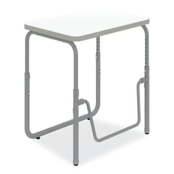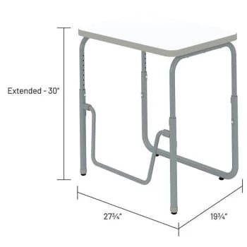 | Features | Encourage healthy movement and provide convenient storage with this height-adjustable student desk that features a high-pressure laminate top and under-surface book box. This desk comfortably accommodates students of all sizes as they work or sketch ideas. A pendulum footrest allows students to redi |