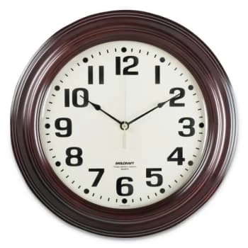- Skilcraft Mahogany Wall Clock, 16″ Overall Diameter, Mahogany Case, 1 Aa